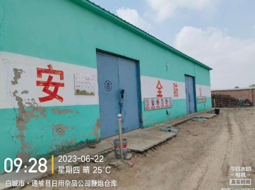 安全评价项目简介 | 通榆县日用杂品公司成立于1989年10月16日,公司类型:集体所有制,法定代表人:张淑杰,注册资金:人民币肆拾陆万元整,注册地址:吉林省通榆县开通镇开通大路。该企业《烟花爆竹经营(批发)许可证》编号:(吉)YHPF220808,仓储设施地址:通榆县和平村通瞻公路南侧,许可证经营范围:个人燃放类产品(不需加工安装的C、D级产品,主要包括爆竹类、喷花类、旋转类、升空类、吐珠类、玩具类、组合烟花类C级或D级产品)。 该企业烟花爆竹储存库区位于通榆县和平村通瞻公路南侧,库区占地面积约11479.6㎡。库区设有3栋1.3级烟花爆竹储存仓库,其中:1#仓库建筑面积为792㎡,核定存药量为16t;2#仓库建筑面积为844.8㎡,核定存药量为16.9t;3#仓库建筑面积为249.6㎡,核定存药量为5t。库区另设有值班室1栋,地下消防水池1座,消防泵房1栋。 该企业自2020年取得烟花爆竹经营(批发)许可证到我公司评价之日未发生过安全生产事故,在此期间,未新建、改建或扩建仓库。 | ||