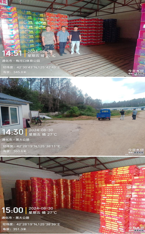 安全评价项目 基本情况介绍 | 梅河口市浏阳河烟花爆竹经销有限公司成立于2006年09月22日,公司类型:有限责任公司(自然人投资或控股),法定代表人:刘健,注册资金:人民币壹拾万元整,住所:吉林省梅河口市梅河大街476号(经营场所:梅河口市黑山头镇团结村)。 该企业《烟花爆竹经营(批发)许可证》编号:(吉)PF[2021]00036,仓储设施地址:梅河口市黑山头镇团结村,许可证经营范围:爆竹类(C级)、喷花类(C级、D级)、旋转类(C级、D级)、升空类(C级)、吐珠类(C级)、玩具类(C级、D级)、组合烟花类(C级、D级)。有效期至2024年11月24日。 梅河口市浏阳河烟花爆竹经销有限公司现有从业人员5人,其中主要负责人1名,专职安全管理人员1名,保管员1名,守护员1名,搬运员1名,均参加了安全培训并取得了资格证书。 梅河口市浏阳河烟花爆竹经销有限公司库区位于梅河口市黑山头镇团结村,库区占地面积约20000㎡,库区设有4栋1.3级烟花爆竹储存仓库,1#仓库建筑面积99㎡,存药量为1980kg;2#仓库建筑面积为1000㎡,存药量为20000kg;3#仓库建筑面积为459㎡,存药量为9180kg;4#仓库建筑面积为450㎡,存药量为9000kg,库区总存药量为40160kg。2#仓库与4#仓库之间封堵42m,3#仓库西北侧封堵17.12m。库区另设有值班室、消防器材室、消防水池、消防泵房等配套设施。 该企业烟花爆竹储存仓库采用砖墙承重结构,仓库采用钢屋架,彩钢瓦屋顶。1#仓库设1个防火分区,设1个安全出口;2#仓库设2个防火分区,设5个安全出口;3 #仓库设1个防火分区,设2个安全出口;4 #仓库设1个防火分区,设2个安全出口,各仓库安全出口门宽均不小于1.5m。 该企业库区设有2座消防水池,总储水量约520m³,保护半径小于150m,能够满足消防用水需求,消防水池旁边有水井,可作为消防水源,消防用水使用后的补给恢复时间不超过48h。 | |||